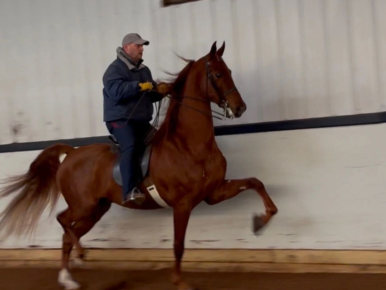 16.2 hand chestnut gelding, half brother to WC Bobbie Gentry. Long necked and upheaded, he boasts wins or reserves at Cleveland Tri-State, Summer Fun, Southeastern and Mid Summer to name a few. Loads of potential with this special gelding!